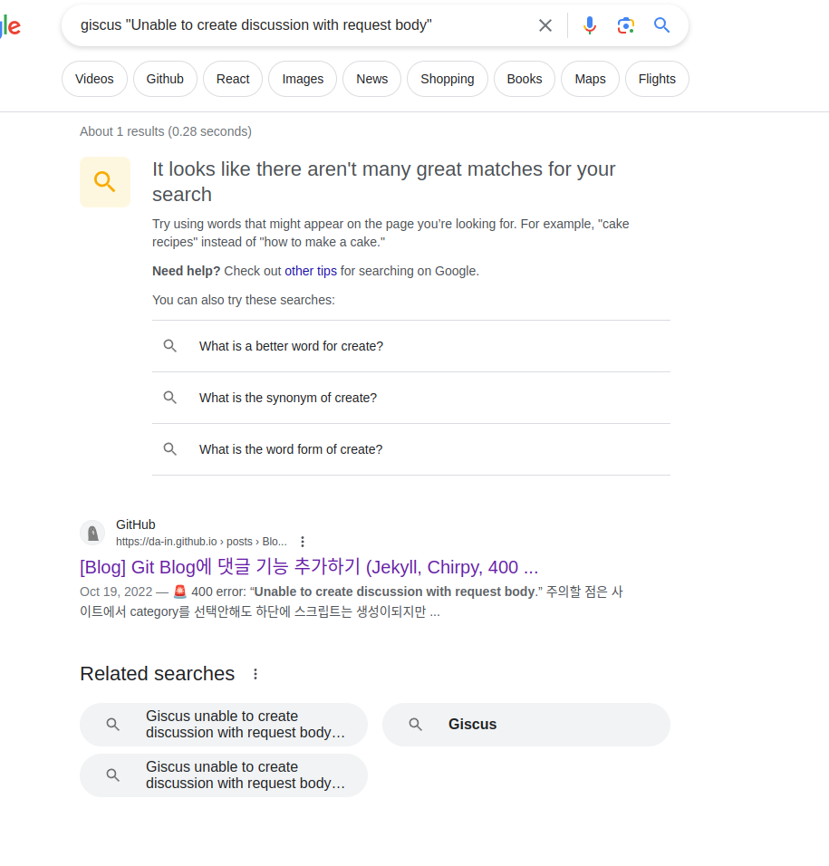 When I was troubleshooting my blog’s usage of the Giscuss service, one of the problems I got after finally getting the right repo (“potential trap” I mentioned), I was still not able to make a comment because the category was misconfigured. However, I could see this error in Google Chrome’s dev tools: Unable to create discussion with request body.